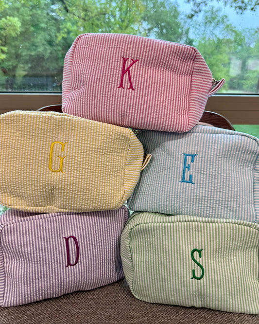 Personalized Seersucker Cosmetic Bag – Custom Monogram or Initial