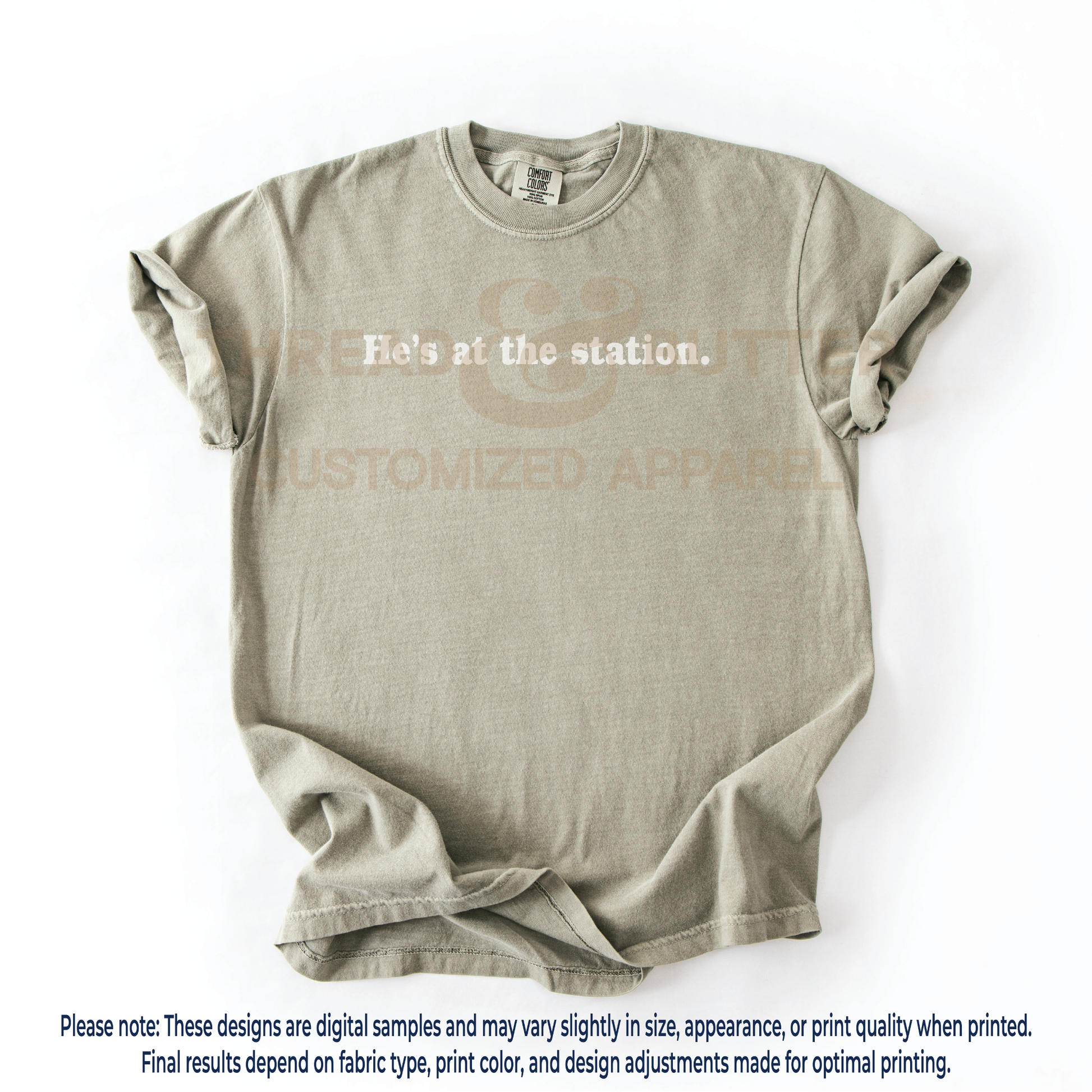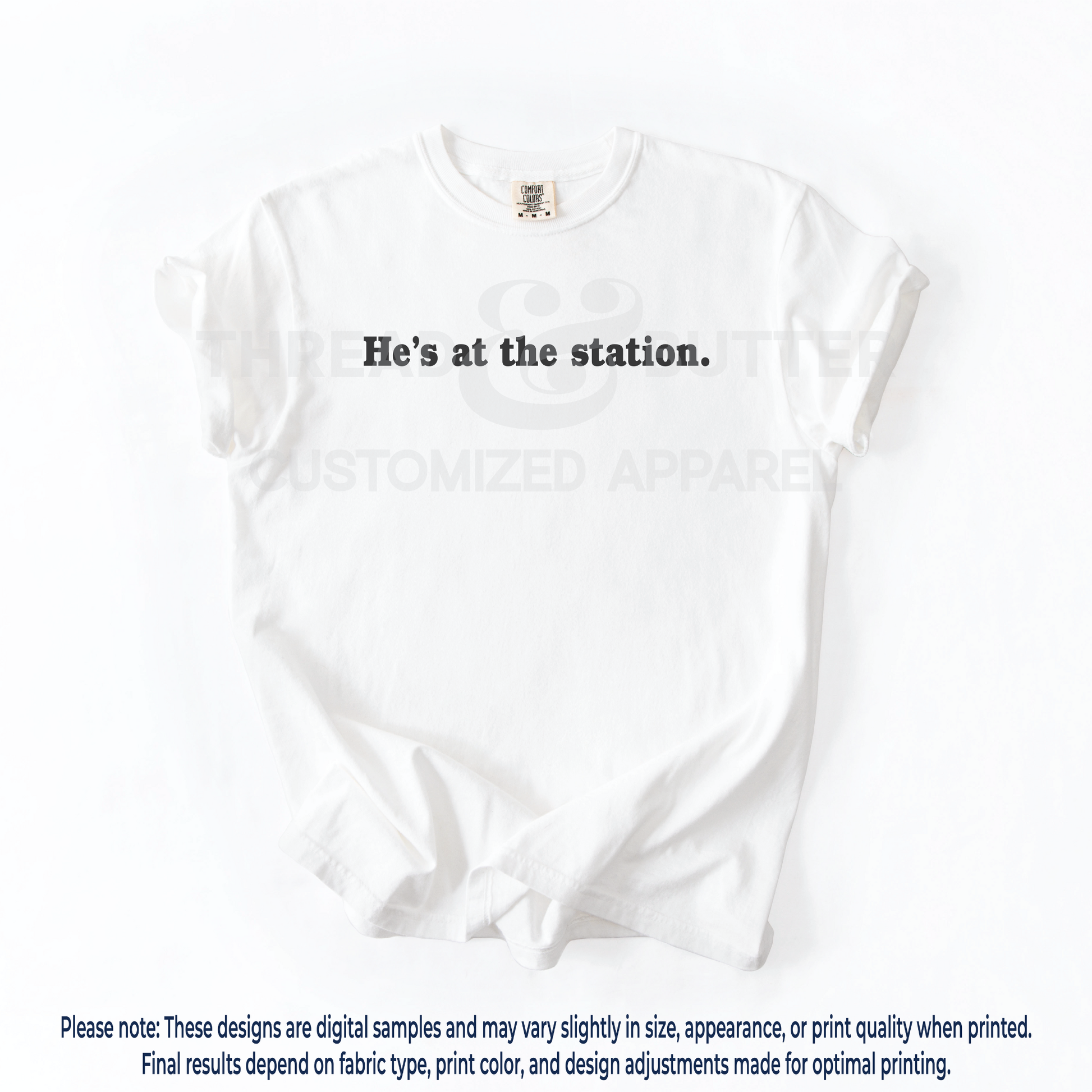 Design is screen printed on your choice of Comfort Colors 1717 style tees - soft, lived-in, and perfect for pairing with jeans or cozy joggers. Whether you’re answering “Where is he?” for the hundredth time or just showing a little pride for your fire family, this shirt says it all!